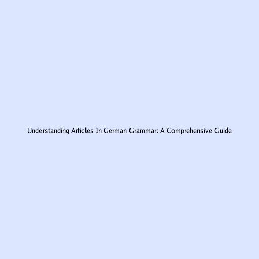 Understanding Articles In German Grammar: A Comprehensive Guide