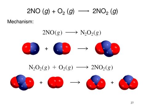 Alright, let’s zero in on our reaction: N2O2(g) + O2(g) -> 2NO2(g) . To identify the molecularity, we just need to do a simple count of the reactant molecules involved in this one single step . Looking at the equation, we have one molecule of N2O2 and one molecule of O2 on the reactant side. That means, in this elementary reaction, we have a total of 1 + 1 = 2 reactant molecules colliding. So, when two molecules come together to react, we call that a bimolecular reaction . It’s that simple, guys! The ‘bi-’ prefix literally means ‘two’. Therefore, the molecularity of the elementary reaction N2O2(g) + O2(g) -> 2NO2(g) is bimolecular . This tells us that for this reaction step to occur, one molecule of N2O2 must collide effectively with one molecule of O2. The ‘effectively’ part is important here – they need to collide with enough energy and with the correct orientation for a reaction to actually take place. If they just bounce off each other without the right conditions, no reaction happens in that specific collision. The stoichiometric coefficients in the balanced equation for an elementary reaction directly indicate the number of molecules of each species involved. Here, the coefficient for N2O2 is 1, and the coefficient for O2 is 1. Summing these coefficients gives us the total number of reactant molecules involved in the collision, which is our molecularity. It’s a direct readout from the balanced equation for elementary steps. This is why understanding that the reaction is elementary is key; if it were a complex reaction with multiple steps, we couldn’t just sum the coefficients on the reactant side to find the overall molecularity. We’d have to analyze the rate-determining step, which is usually the slowest step in the reaction mechanism. But for this specific, simple, single-step reaction, the molecularity is clearly bimolecular based on the reactants present. It’s a fundamental building block for understanding reaction mechanisms.