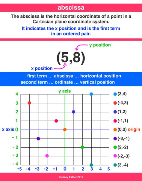 Now that we know the abscissa is the x-coordinate, let’s talk about its buddy, the ordinate . The ordinate is simply the y-coordinate of a point. So, in our (x, y) coordinate pair, the ordinate is the ‘y’ value. Think of it as the vertical distance from the x-axis. If the abscissa tells you how far to go horizontally, the ordinate tells you how far to go vertically. Together, they give you the precise location of a point on the plane.