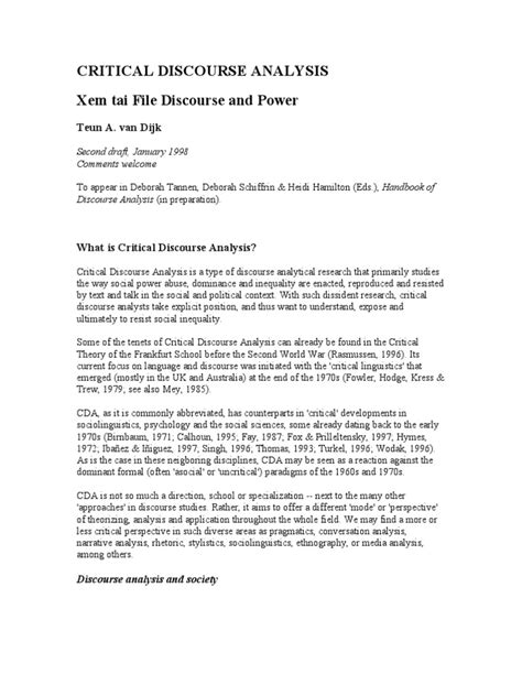 Now, let’s shift gears and talk about perhaps the most well-known and impactful aspect of Teun A. van Dijk’s work: Critical Discourse Analysis (CDA) . If you’ve heard of him, it’s likely in this context. Guys, CDA is not just about describing language; it’s about critiquing it, specifically focusing on how discourse is used to establish and maintain social inequalities, dominance, and power. Van Dijk is a pioneer in this critical turn, urging us to look beyond the surface of what is said or written and ask: Who benefits from this discourse? How is power being exercised? How are marginalized groups represented (or misrepresented)? CDA, as spearheaded by Van Dijk, is inherently political . It’s not neutral; it takes a stance against domination and injustice. He argues that language is a primary site where power struggles unfold. Think about media coverage of social issues, political rhetoric, or even everyday conversations – they can all be arenas where certain groups are empowered and others are disempowered. Van Dijk’s CDA provides a framework for unmasking these processes. A key concept here is discursive racism or ethnicism . He meticulously analyzed how racism is not always overt but is often subtly embedded in everyday language, news reports, and political discourse. He showed how subtle word choices, framing of issues, negative attributions, and the exclusion of certain perspectives can contribute to racist ideologies and practices, even when the speakers or writers claim not to be racist. It’s about the systemic reproduction of prejudice through communication. Crucially , Van Dijk emphasizes the sociocognitive dimension within CDA. He explains how our understanding and acceptance of biased discourse are linked to our mental representations – our beliefs, attitudes, and knowledge structures. Dominant groups often have control over the production and dissemination of discourse, shaping the common-sense beliefs (or ideologies ) of society. CDA, therefore, aims to reveal these hidden ideological mechanisms by analyzing both the textual and the contextual aspects of discourse. The contextual part is huge – it involves understanding the social, political, and historical circumstances in which the discourse is produced and received. Van Dijk developed elaborate methods for analyzing discourse structures, from micro-level lexical choices and grammar to macro-level themes and argumentation, always linking these back to power relations and ideologies. He introduced the idea of the group s prejudice model and how discourse plays a role in forming and spreading it. Essentially, CDA is a call to arms for analysts to use their understanding of language to challenge oppressive structures and promote social justice. It’s about recognizing that language matters, that it shapes our realities, and that by critically analyzing it, we can begin to dismantle systems of inequality. So, when you encounter persuasive language, biased reporting, or political speeches, remember Van Dijk and CDA – they offer the tools to look deeper and understand the power dynamics at play.