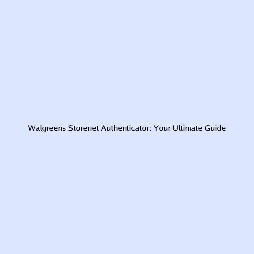 Walgreens Storenet Authenticator: Your Ultimate Guide
