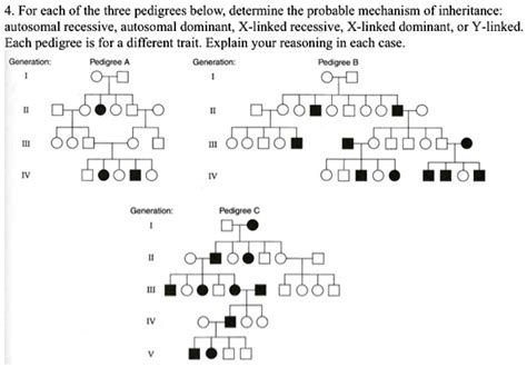 Identifying X-linked recessive traits in pedigrees involves carefully examining the inheritance patterns across generations. Pedigrees, which are visual representations of a family’s genetic history, serve as valuable tools for tracking the transmission of specific traits or conditions. In the case of X-linked recessive traits, certain telltale signs can help distinguish them from other modes of inheritance, such as autosomal dominant or recessive inheritance. One of the primary clues is the prevalence of the trait in males . As males have only one X chromosome, they are more likely to express an X-linked recessive trait if they inherit the mutated gene. In contrast, females, with their two X chromosomes, are often carriers of the trait without showing any symptoms. Therefore, a pedigree showing a significantly higher number of affected males compared to affected females is a strong indicator of X-linked recessive inheritance. Another important factor to consider is the relationship between affected individuals. In X-linked recessive inheritance, affected males are typically related through their mothers, who are carriers of the mutated gene. The trait can pass from an affected male to his daughters, who become carriers, and then to his daughters’ sons, who may express the trait. This pattern of inheritance creates a characteristic “diagonal” transmission through the pedigree, where affected males are connected through a line of carrier females. Moreover, it is essential to note that X-linked recessive traits are not directly transmitted from father to son. Fathers pass their Y chromosome to their sons, not their X chromosome. Therefore, an affected father cannot pass the mutated gene directly to his male offspring. However, he will pass the mutated gene to all of his daughters, making them obligate carriers. By analyzing the presence of these patterns—higher prevalence in males, relationships through carrier females, and absence of father-to-son transmission—one can effectively identify X-linked recessive traits in pedigrees. This identification is crucial for accurate genetic counseling, risk assessment, and informed decision-making within families.